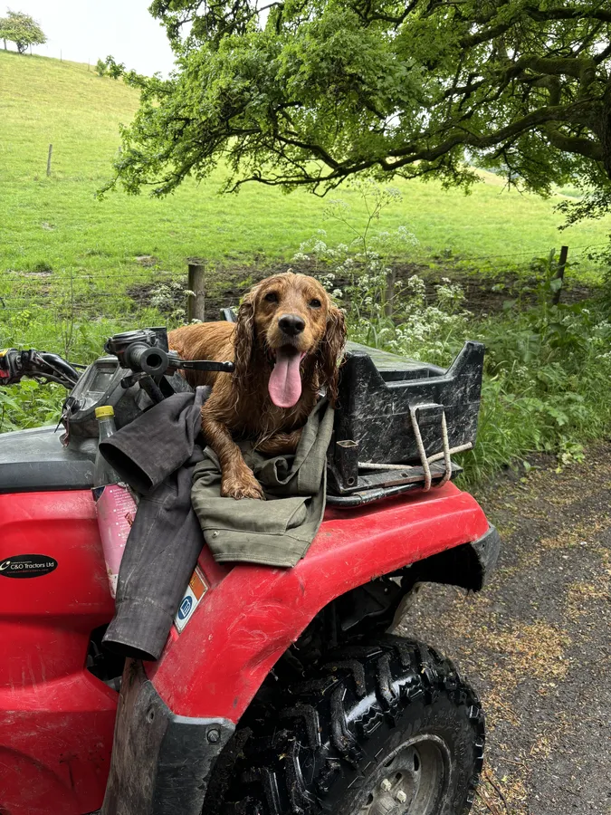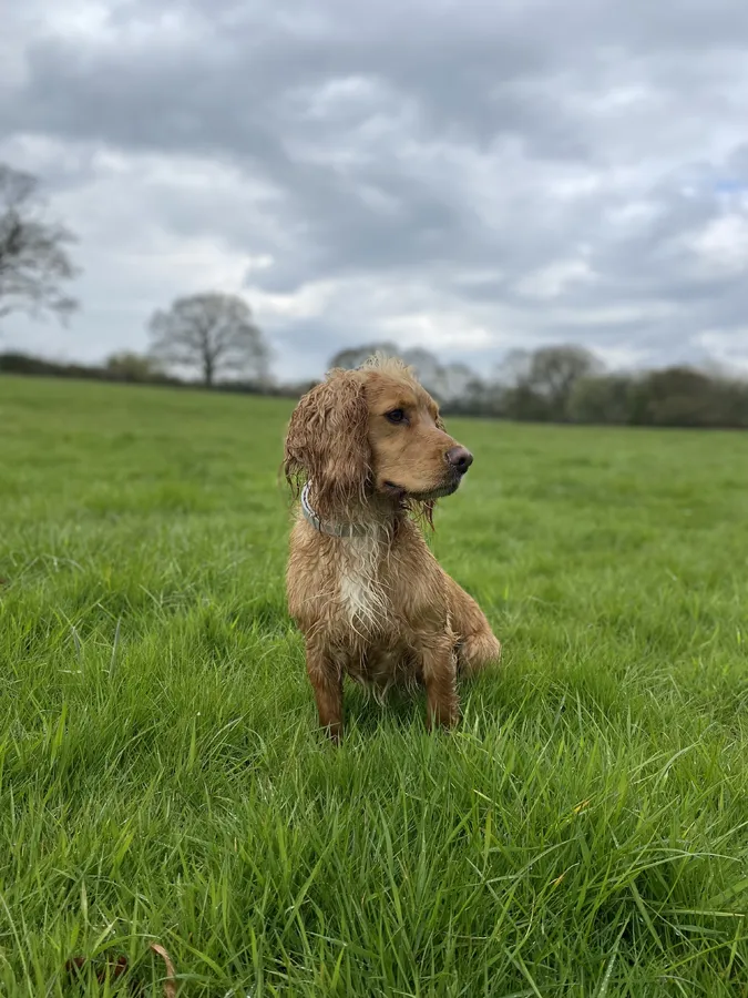 Family bred dog, a real tough type, with a very high drive. Has beat and pick up on a range of shoots, has also dogged in. Very trainable, has been ratting, worked sheep and ran alongside the horses, always switches off well.