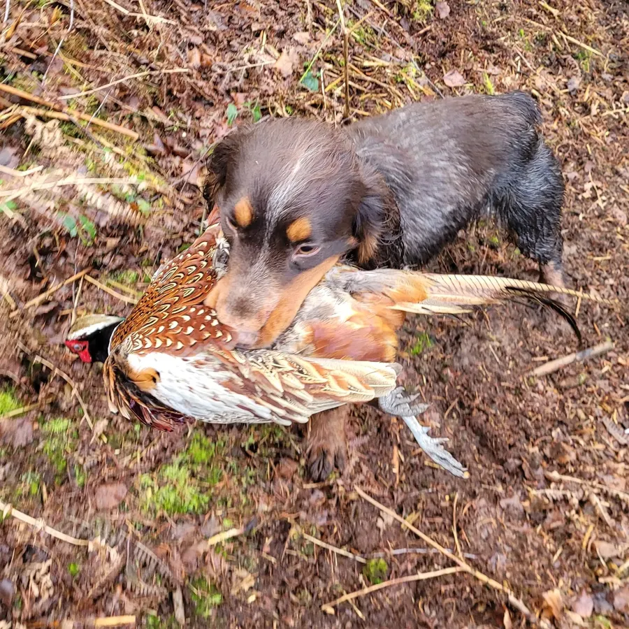 Merlin has a very kind nature with amazing working ability,Picking up through out the shoot season on all different terrain.also sits on peg and is happily shot over.merlin is full of character, home bred and we own his mother,sisters and brothers. Merlin isn't like your typical cocker, he does have an off switch, is nice and placid which is extremel important for those non workin days.