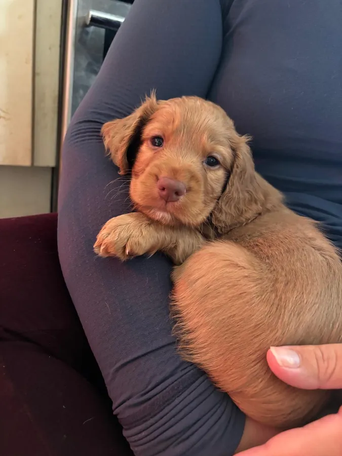 Mum can be seen and is from working stock. PLA grade 0 and BVA eyes tested clear. She has a wonderful temperment, is extremely loyal and has proven to be intelligent and eager to please out in the field with an amazing natural hunting instinct. She lives to work but still has the all important “off switch” and loves to cuddle with you on the sofa.