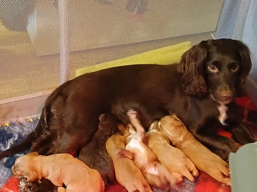 Sire is KC registered “Winston Edwards” and is a cracking little working dog. He was chosen for his beautiful soft temperment plus natural hunting ability and has incredible working lines with lots of FTCH.