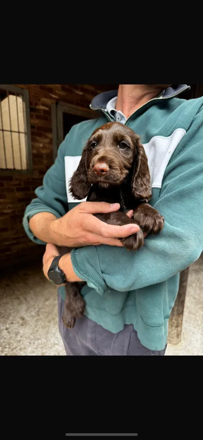 Beautiful chocolate working cocker dog pup. Docked with certificate. Both parents can be seen and are great working dogs as well as beloved house pets. Mum isn’t kc registered but dad is. Microchipped and have had their first vaccination. Ready to go! Call or message me on 07899096556. Thank you