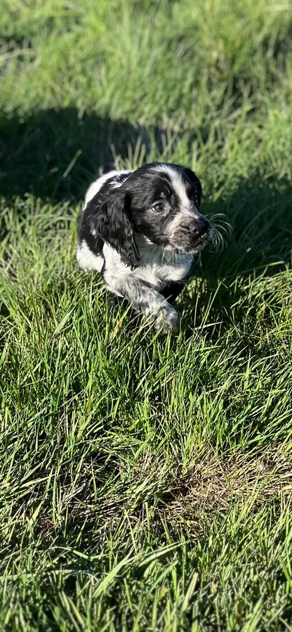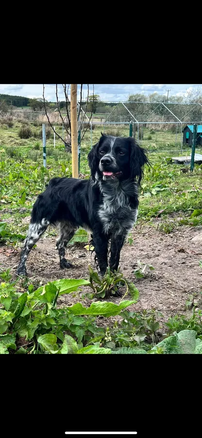 Dad is a black and white Britney spaniel (grouse) he’s my sisters she does work him and he’s also a pet