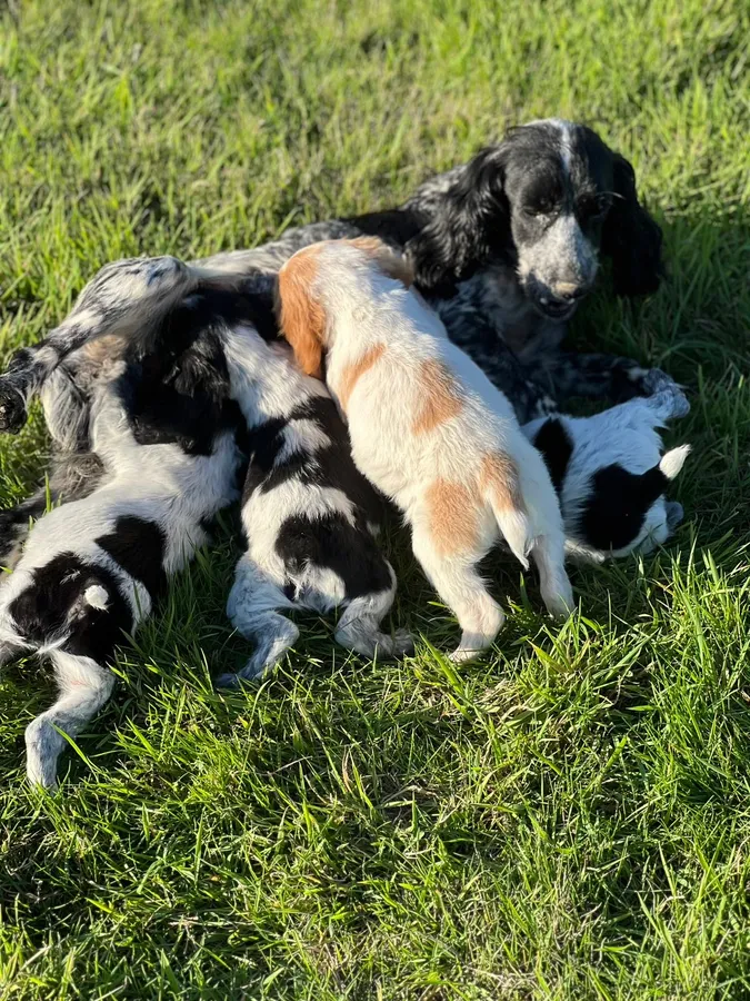 Mum is blue roan cocker spaniel(blue) shes a very sweet girly who still absolutely loves her baby’s