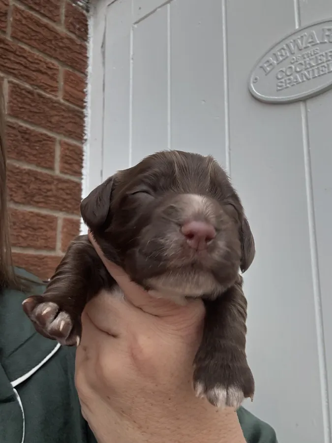 DescriptionWelcome to my advert for my beloved Ivys first and only ever litter.She is a very small cocker who is the most biddable obedient girl I’ve ever known.She has the most amazing turn of switch when at home but on the fields she’s so driven. She is off WHAUPLEY pedigree,the famous Jay so she has an amazing temperament and then to compliment her we have used the handsome Seth of WERNMOOR lightening.Who is also a smaller standing cocker with an amazing chilled but driven attitude. We are very proud of this coupling and it was planned for us to keep a pup back.both parents are health tested so no hereditary illnesses will be passed onto these beautiful little creations.They will be DOCKED with all relevant paperwork.Also KC registered and new owners will receive pedigree ownership. We love our dogs and they won’t be going to homes who havnt had dog experience as these deserve the world if they turn out like mum and dad. Price is £1150 with £150 deposit which is non refundable if you have a Change of heart but will be returned when the pups have final health check if I feel it is needed to keep the pup back. 4 BOYS- black/tan/white - liver/ white/roan markings - liver/ white/roan markings - liver/white/roan markings 2 GIRLS- choc/tan points ( sold) - liver with white/roan nose **Ready to leave the 27th of November** Give me a call for any info on ************