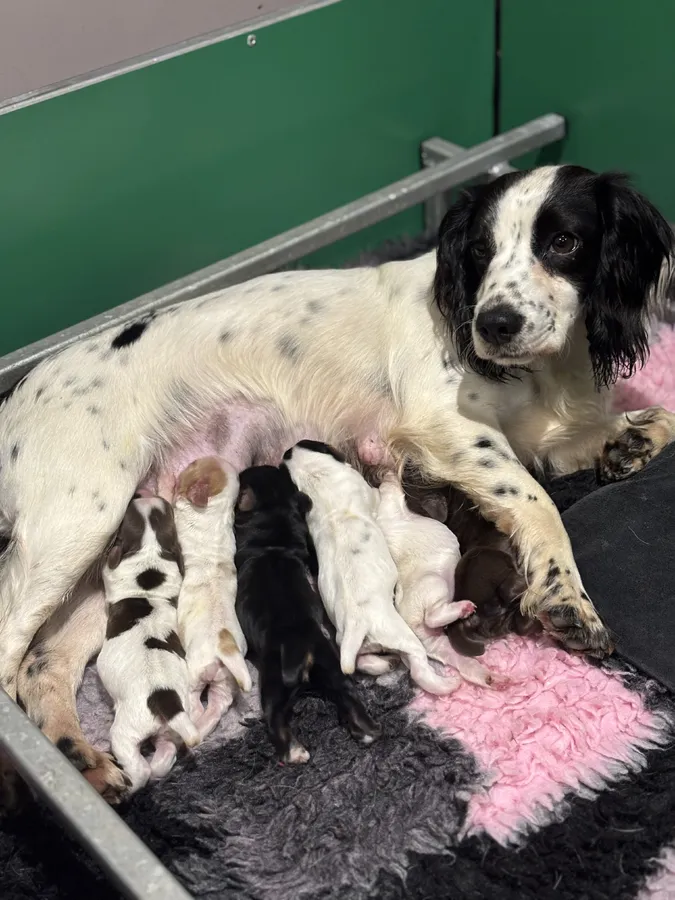 The dam Dotty is a small compact fast, biddable working cocker, she’s mainly used for dogging in all summer and some beating days. She is a very small cocker weighing 7kg .