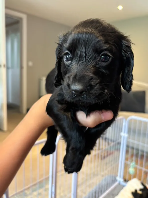 Female Cocker Spaniel Puppy – Excellent Pedigree From Excellent Working Lines. We have a lovely litter of 7 Working Cocker Spaniel puppies – 4 dogs and 3 bitches – born 11th September and ready for their new homes from 6th November. They are currently 7 weeks old and thriving. Both parents are proven working cockers with excellent temperaments and strong pedigrees. Dad is a Novice Field Trial Champion, and both parents’ papers can be viewed. Mum and grandmother can both be seen here at home. The puppies have been legally docked with full veterinary certificates provided. Raised in a loving family home, they are well socialised, confident, and used to children and household noises. These pups will make ideal working dogs or active family companions in the right homes. Please get in touch for more information, photos or to arrange a viewing. Serious enquiries only. No time wasters please. Deposit required. 1 bitch available.