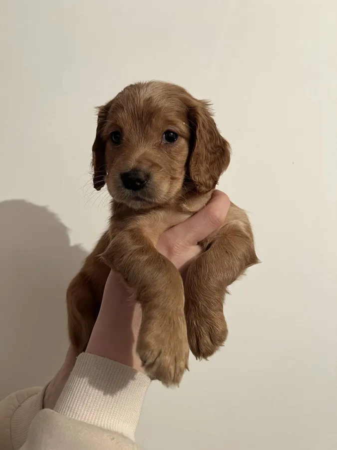 I am pleased to say that my boyfriend is selling KC registered working cocker spaniel puppies. 4 girls - 3 gold & 1 black out of Mallowdale God X Dame Jackson. Born on the 16th September and ready to go to there new homes on the 11th November.