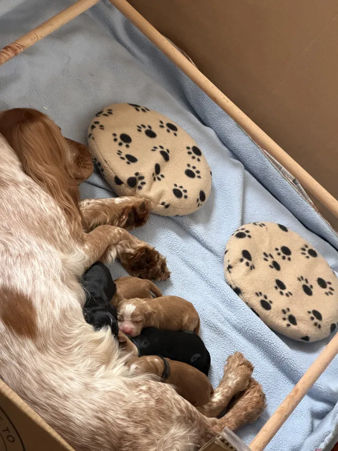 We’re delighted to announce our beautiful litter of KC Registered Working Cocker Spaniel puppies are soon ready to find their forever homes! These gorgeous pups are being lovingly raised in our family home, surrounded by everyday noises, children, and plenty of cuddles — making them confident, happy, and well-socialised companions. ✨ Details: Breed: Working Cocker Spaniel (Kennel Club Registered) Available: 3 boys (1 Black/White & 2 Red/White) 4 girls (1 Black/White & 3 Red/White) Age: Currently 2.5 Weeks - Ready from 3rd December 2025. Parents: Both parents are KC registered, health tested (AMS/FN/prcd-PRA), and have lovely temperaments. They have loads of FTCH in both pedigrees :) Our puppies will go to their new homes with: ✅ KC registration paperwork ✅ Puppy pack (food, blanket with mum’s scent) Cocker Spaniels make wonderful family pets — affectionate, intelligent, and full of character. We’re looking for loving homes where they’ll be treated as part of the family.📍 Located in Wirral 💰 Price: 1500
