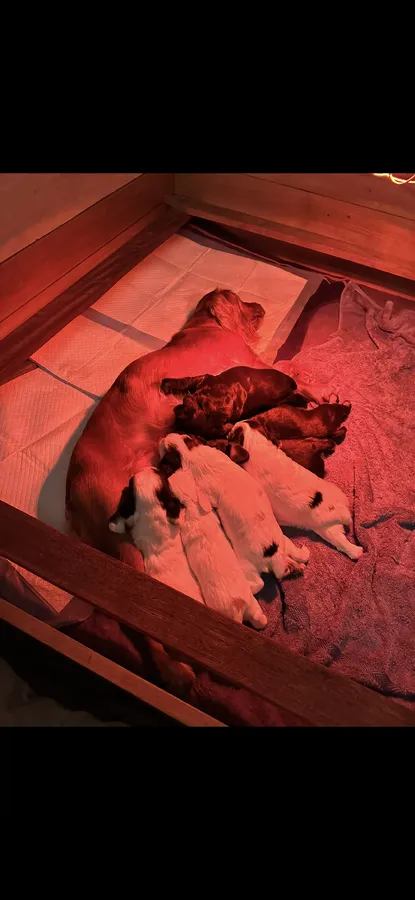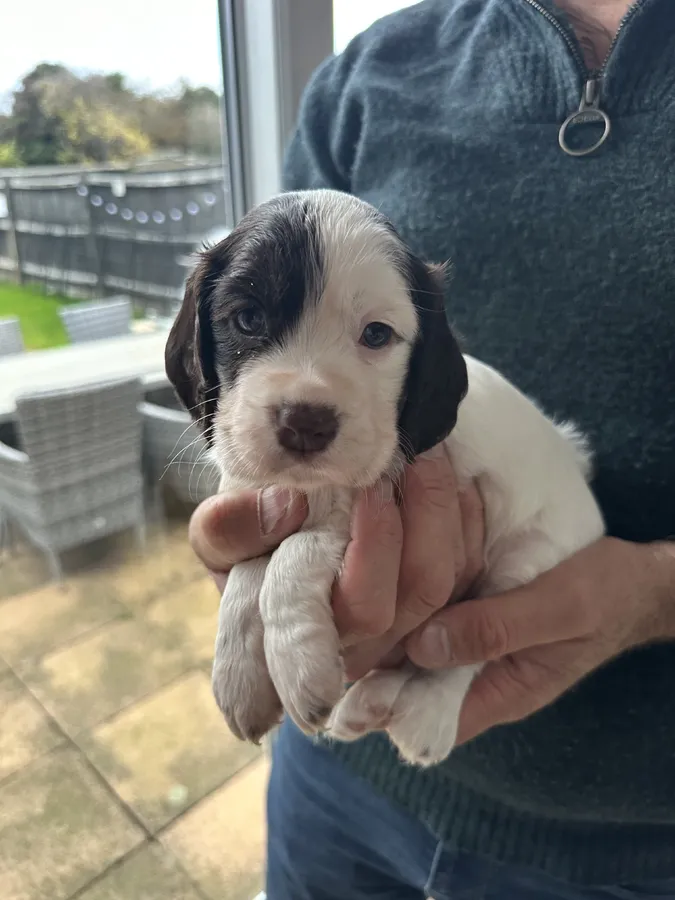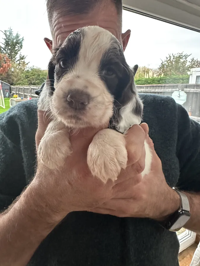 Our beautiful girl Elsie has given birth to a beautiful litter of 7 working cocker spaniels. The pups are beautiful we have available 3 x boys 1 x girl. Both mum & dad are amazing in temperament & we can see this coming through in the pups. Lovely colouring on all pups. All KC reg microchipped, worming & flea treatment will be up to date & first vaccinations booked for 01/12/25. They have had their tails docked & dew claws removed. FT in both sides of bloodline. Available: