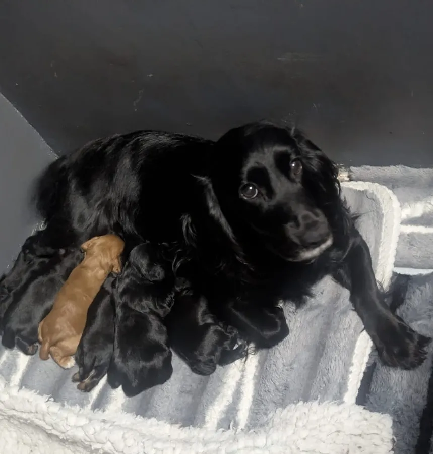 Cracking litter of working cocker spaniel puppies being reared in a busy household and around other dogs. 1x Red bitch 1x Black bitch 1x Black dog and 1x Black and Tan dog. Pictures on request, happy to video call. Puppies will be ready to leave at 8 weeks of age, 2nd Jan (happy to hold for longer if not convenient) Both parents can be seen with puppies.