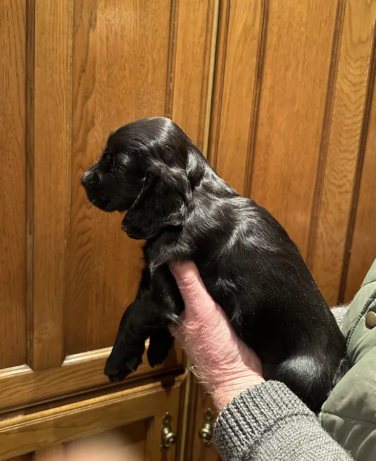 I have a beautiful black Cocker Spaniel puppy available to a suitable and approved home. He is one of four puppies from a carefully planned litter bred from fully health-tested parents. Both sire and dam are experienced, fully trained working gundogs and are active members of my working team each week, demonstrating excellent temperament, trainability, and working ability.