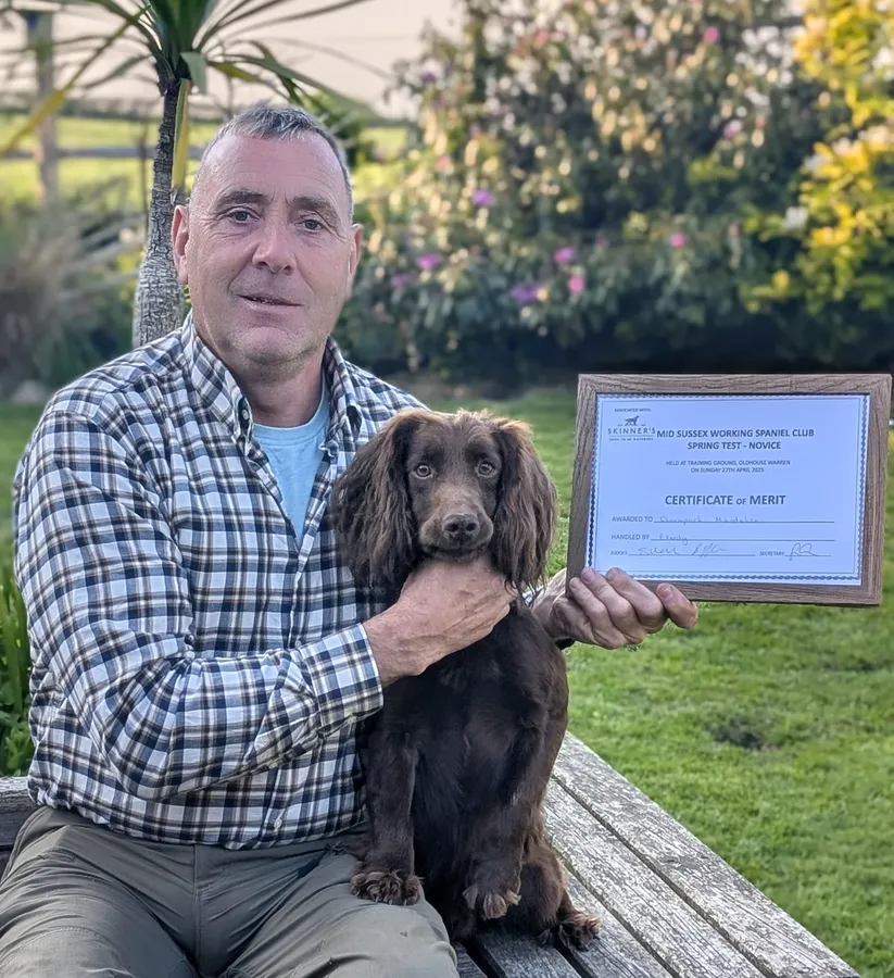Sire: Charmpark Mandalin (Moss) – out of GB FTCH Endowood Cork. Moss is an outstanding working dog on the field with a superb temperament and natural ability. He works regularly on shoots, has achieved Certificates of Merit in his first working tests, is a multiple scurry winner and has recently competed in his first field trial.