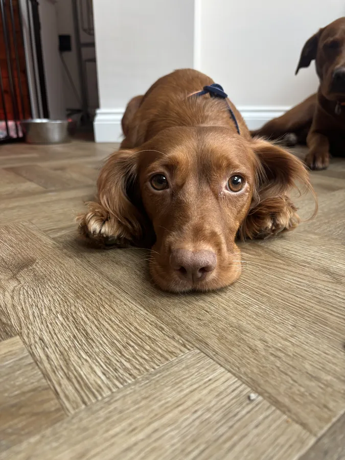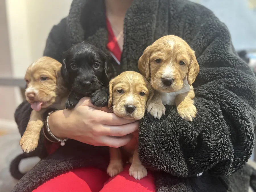 Born on the 15th November we have 4 boys left. We have bred out pet working cocker spaniel with a working cocker spaniel who works and lives on a farm. His owner is a gamekeeper and takes him on shoots regularly having him retrieve all sorts of game. Both the mother and the father are KC registered. If you want to reserve a puppy it’s a 25% deposit (£500) to take him off the list and keep them just for you. All deposits are non refundable. We have had 6 boys and 2 girls born. 1 boy is liver colour (Reserved) 1 boy is black 4 boys are yellow/red (1 is Reserved) 1 girl yellow/red (Reserved) 1 girl yellow and white (Reserved). The pups will be raised in the house along side my other two working dogs a working Labrador and a Hungarian vizsla, they’ll be used to normal household sounds – the vacuum cleaner, TV, laughter, and lots of unusual sounds as well – and they’ll meet all sorts of people When they leave for their new homes, each puppy will have had: ✨ A full vet check ✨ Their first vaccinations ✨ Up-to-date worming treatment ✨ Kennel Club registration papers ✨ A five-generation pedigree ✨ A puppy pack ✨ And a comfort blanket that smells of mum Nearer the time, I will create a WhatsApp group for everyone who is having a puppy. This group is for sharing milestones as they grow and keeping families up to date with how they are getting on. If you’d like to join the waitlist or learn more about this special litter, please get in touch on here or through our instagram. I’m always happy to answer questions and share updates. We can’t wait to meet the families who will love these puppies as much as we do 🤎🖤🧡 Instagram @ginger_gun_dogs