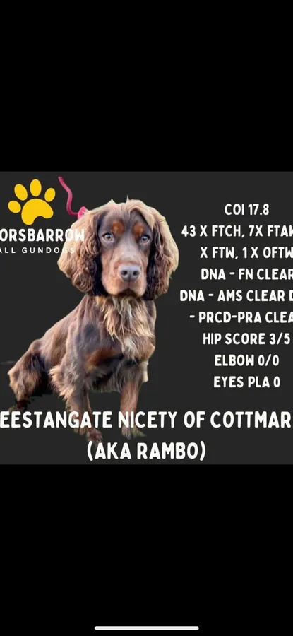 For stud we have used the notorious Rambo from Moorsbarrow hall farm Gundogs. He is a great working dog and has been knitted perfectly with Bonnie to compliment each other in working aspects and personality - they have produced 9 perfect healthy pups. Both Dam and Sire are health panel tested to insure no pups will have any health dispositions.