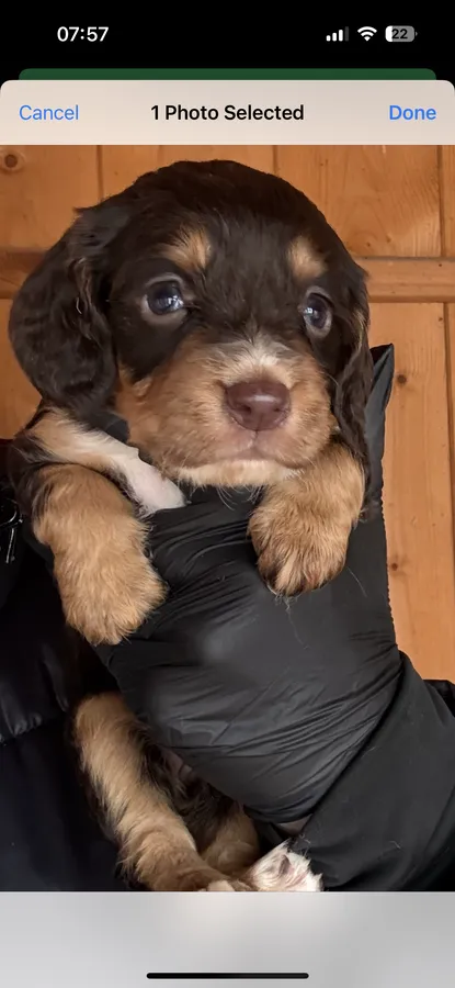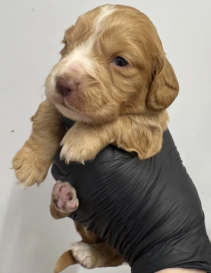 There are 9 pups available 5 chocolate & tan , 3 gold and 1 white & chocolate, pups were born on 17th December they will be ready to leave on 11th February, they will have a written health report from the vet , microchipped , flead & wormed ( they are on a worming program from 2 weeks old )you will also have 5 weeks free pet health Insurance from Kennel Club, once you have collected your pup.