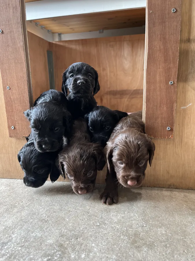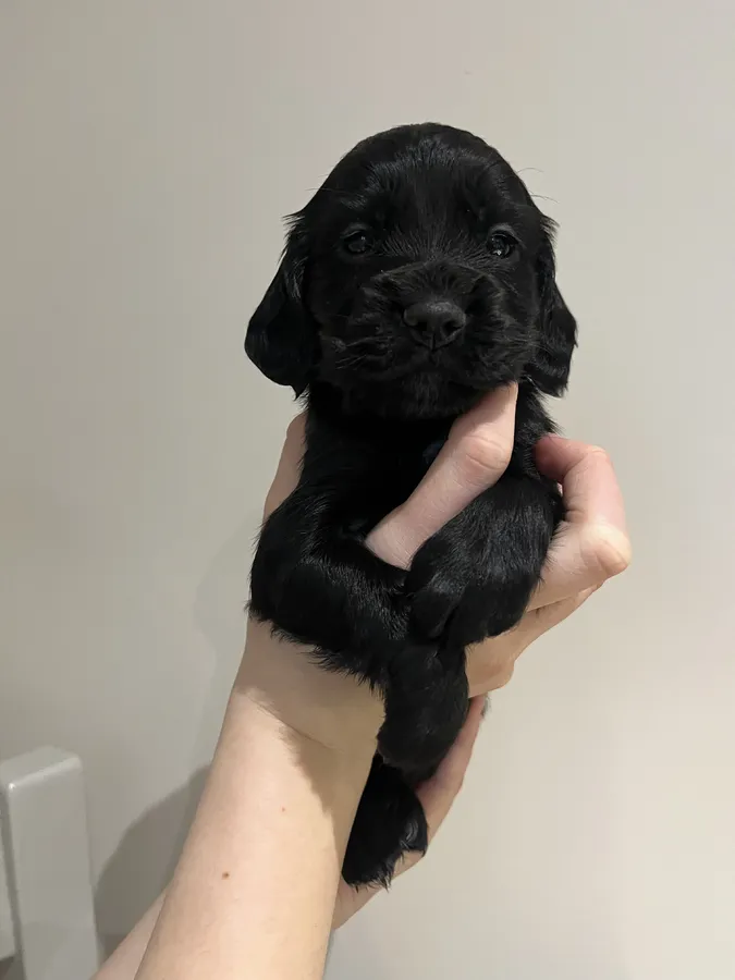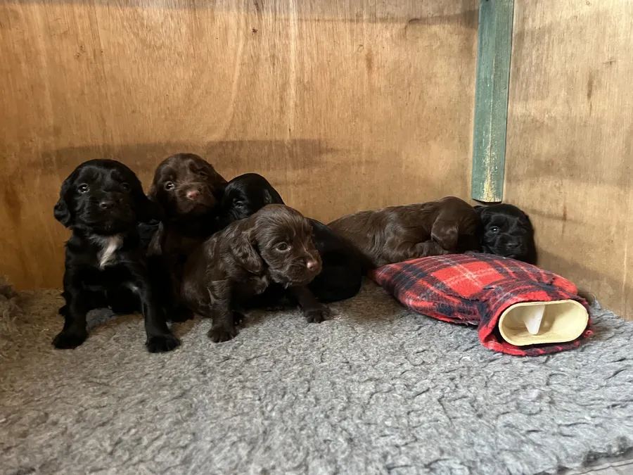 2 black dogs available from Hattie’s gorgeous litter of KC registered black and chocolate working Cocker Spaniel puppies available to working/active family homes on 6th March.