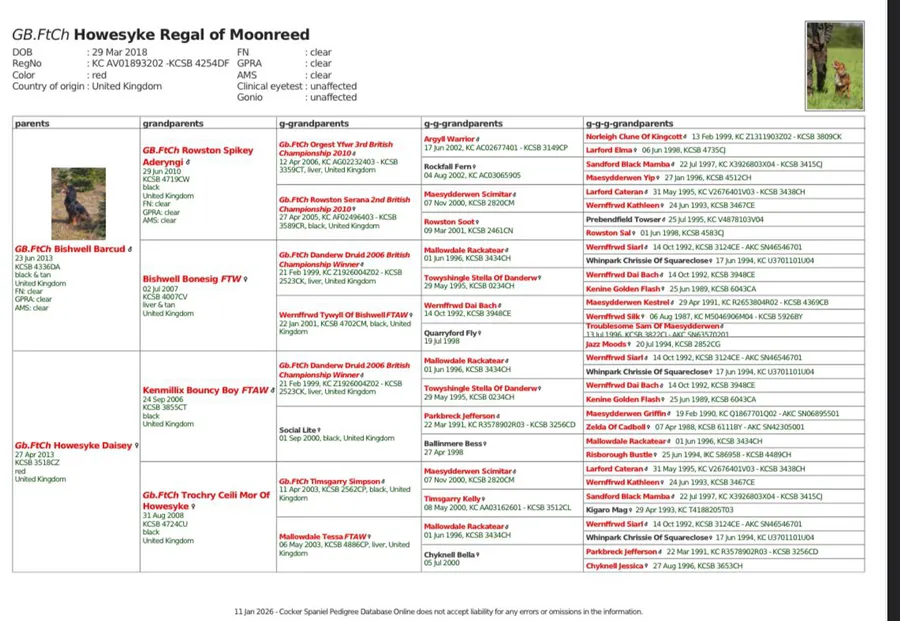 Sire: ’Charlie’ (KC name: Howeskye Regal of Moonreed ) is a Field Trial Champion (FTCh). He’s hardworking, biddable, small extremely agile, fully health checked, and from an incredible pedigree. A really lovely match.