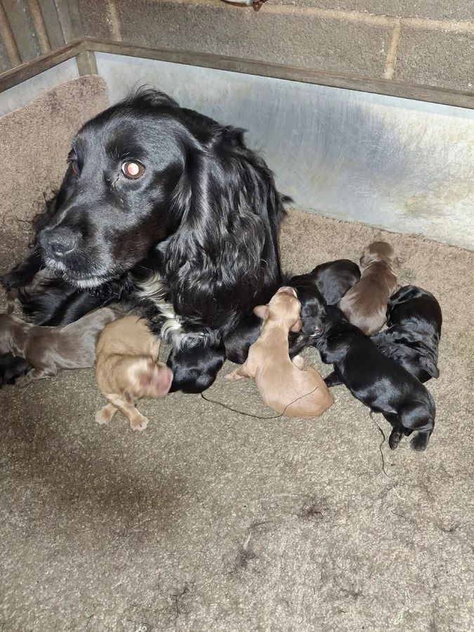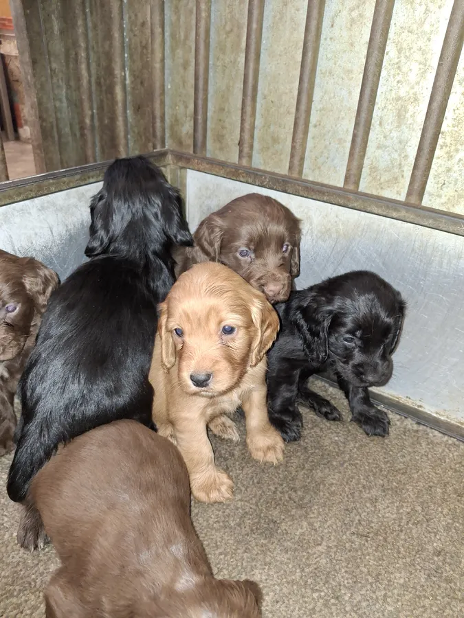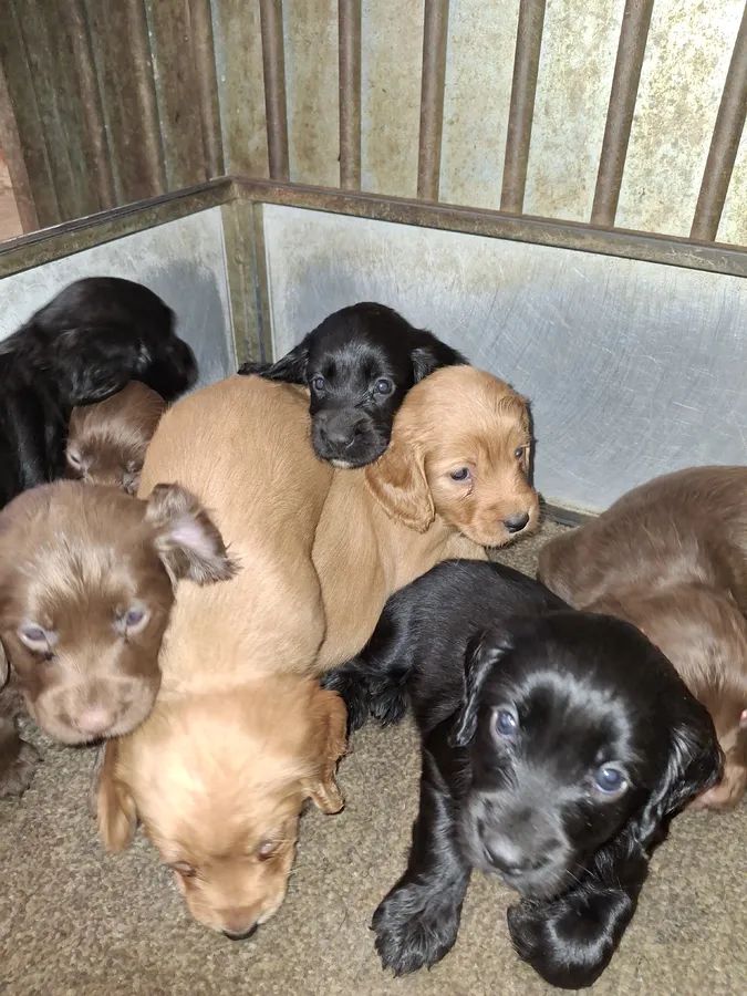 Stunning ftch sired kc working cocker pups we are delighted to offer an outstanding litter of working cocker spaniel puppies that come from outstanding bloodlines with both parents being fully health tested ensuring the best start for these pups they have been wormed and flead every 2 weeks they are microchipped and will be vet checked before leaving we have 2 red boys and 2 black boys