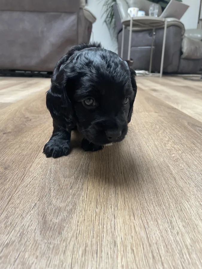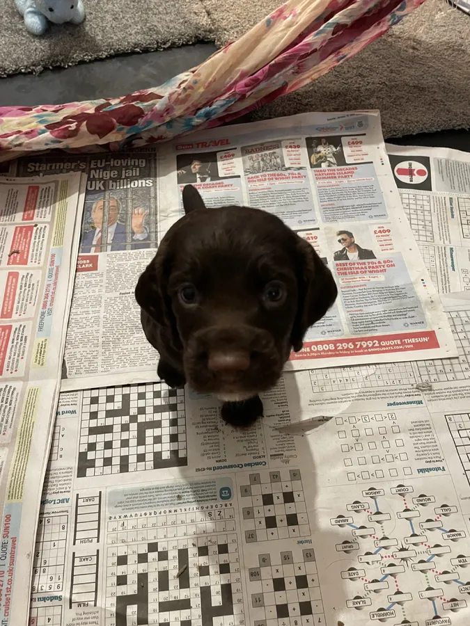 KC registered, tails docked with docking certificate, dew claws removed, fantastic pedigree including several FtCHs, dam DNA tested and clear of AMS, FN and prcd-PRA, vet checked, microchipped, 1st vaccine, regularly wormed.