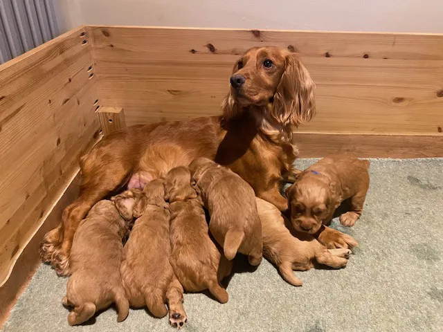 Our family dog, Molly, had a wonderful litter of six working cocker spaniels born on 12/1/26. Just two dogs left.
