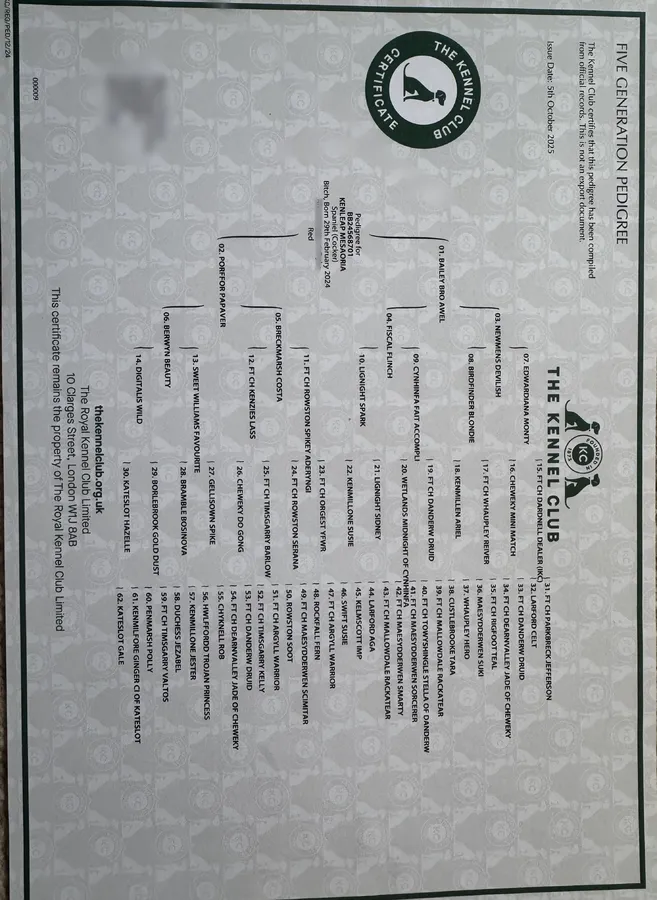 • Be Kennel Club registered on collection