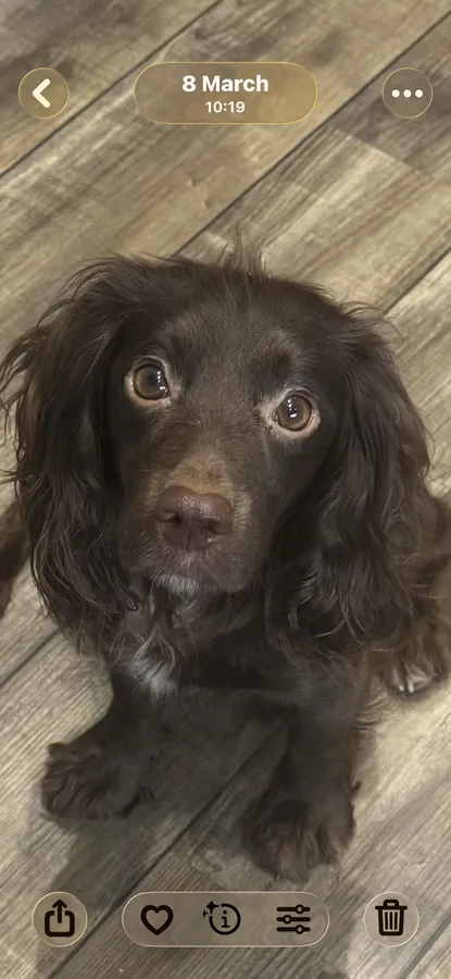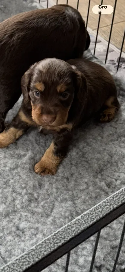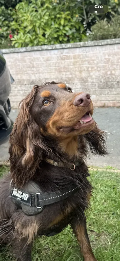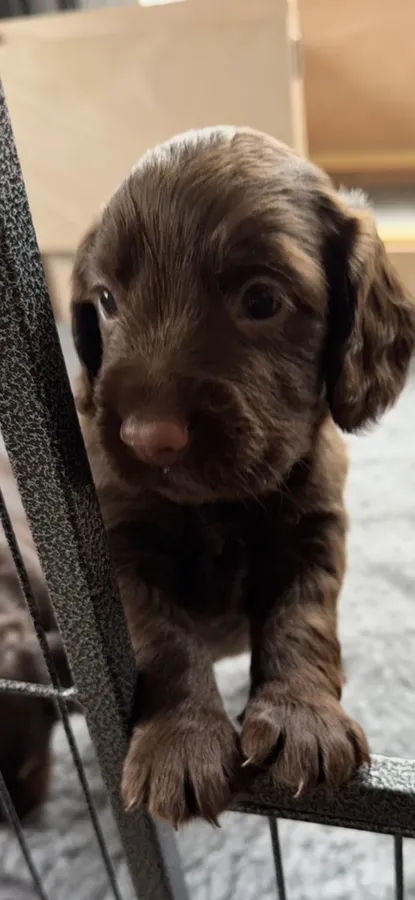 Dad is a very handsome Chocolate and tan working cocker. He’s incredibly loyal and always has a smile on his face!
