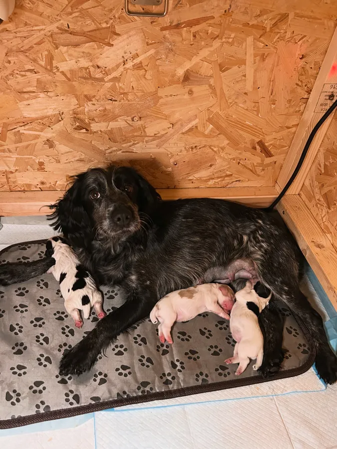 Both of these puppies will be the same colour as the mother and are registered at black and white ticked. It is a truly lovely colour. She blends beautifully when working in the field.