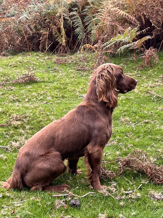 He hunts and quarters up, handles back, left and right, has been shot over and is steady to the flush. Very good all round dog for his age, he has been produced with a view to compete, but is just lacking a bit of speed.