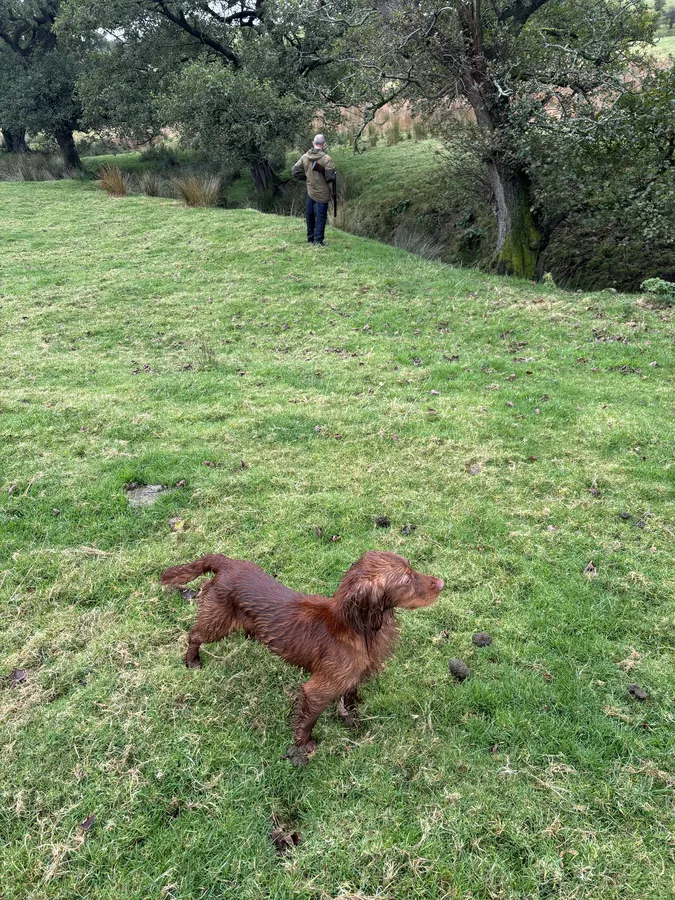 Plenty of experience in Beating and Picking up of driven days, Dogging in and Rough shooting (fur and feather), in which he is a pleasure to walk behind and shoot over. No noise or faults at all.