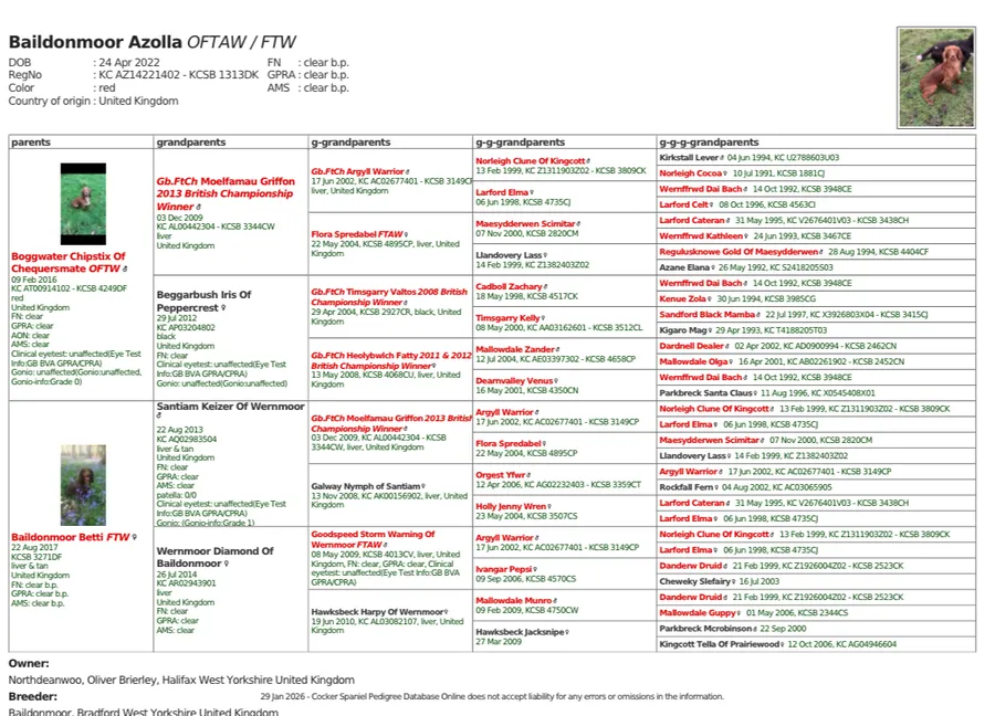 Fully health tested; Hereditary clear AMS, PRA & FN.