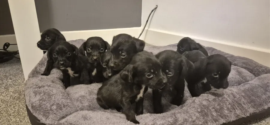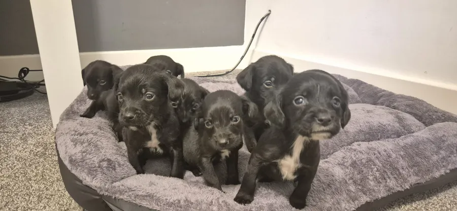 Stunning litter of strong well bred springerdor puppies black and white well socialised they come with micro chip flead and wormed. Parents can be seen at request as they are my own dogs.