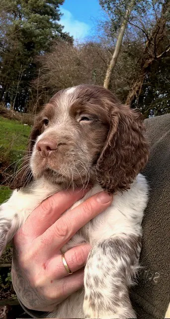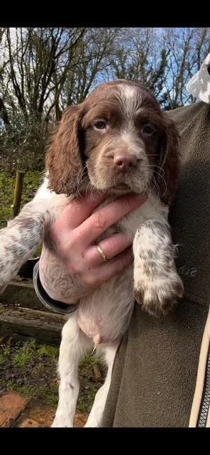 Mum is liver & white working KC ESS, Dad is working F1 chocolate roan sprocker. Whilst both parents work on both large commercial and small syndicate shoots both beating and picking up, they are also much loved family dogs. Fantastic all round dogs. As such this litter of pups are well socialised with children and other dogs.