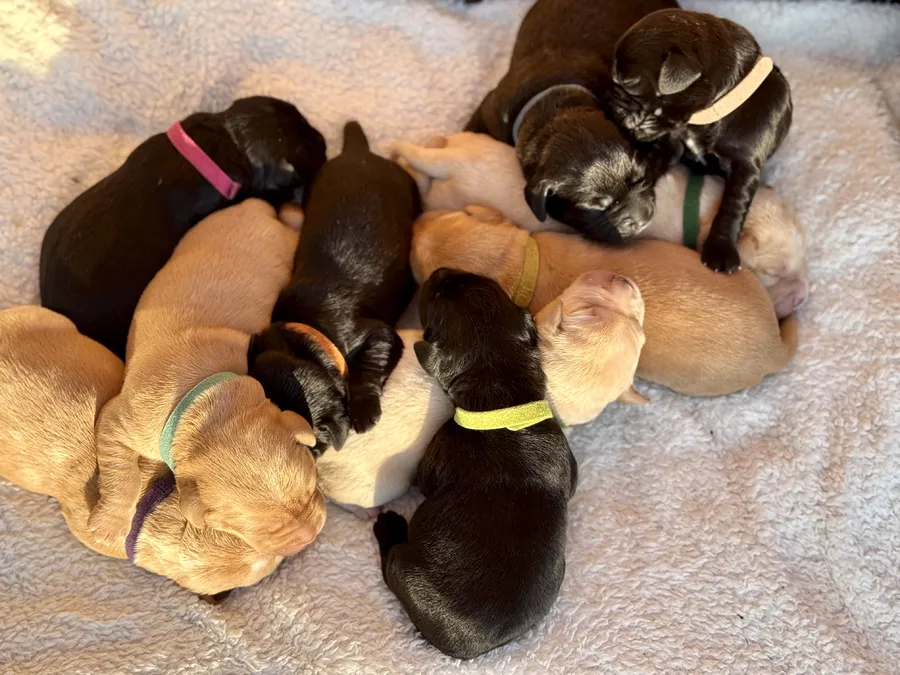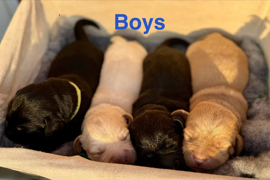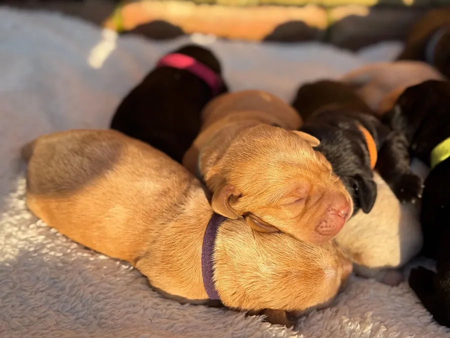 Stunning litter of strong puppies, 75% Lab - 25% Springer. 7 boys & 3 Girls, mixed colours including Fox Red, yellow, black and silver from proven working lines.
