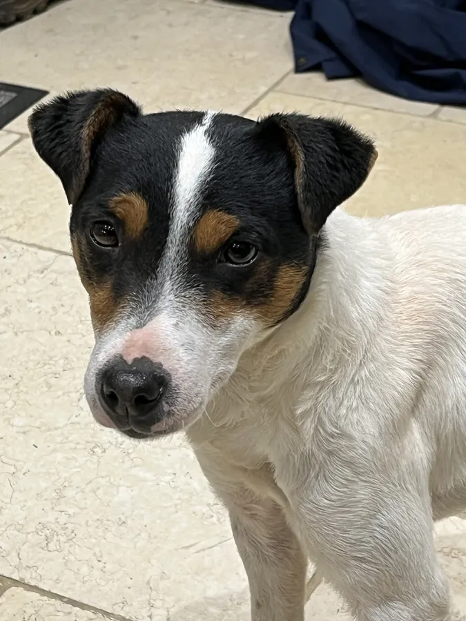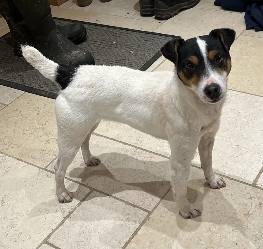 Parson Russell type terrier for sale. Very nice looking, well bred bitch. Mainly white with black and tan markings to face. 3 years old. Not been bred from. Excellent recall and great personality. Great at dogging in on pheasant shoot and brilliant ratter.