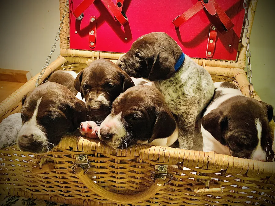 6 German Shorthaired Pointer puppies (3 bitches and 3 dogs) available for their new forever homes.