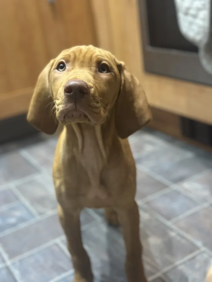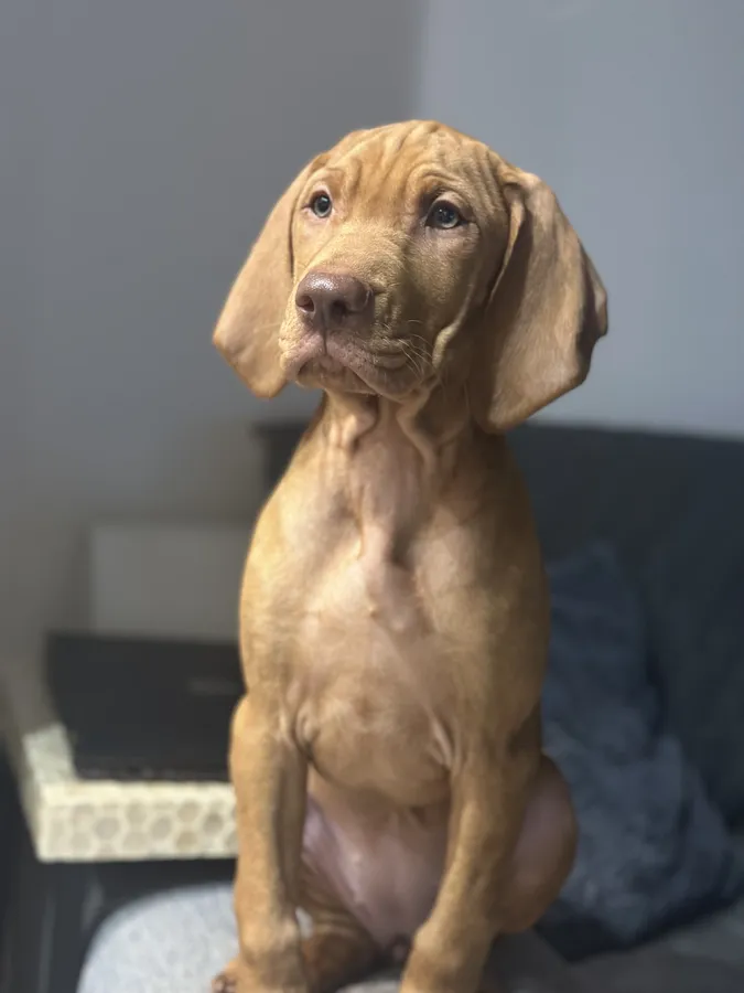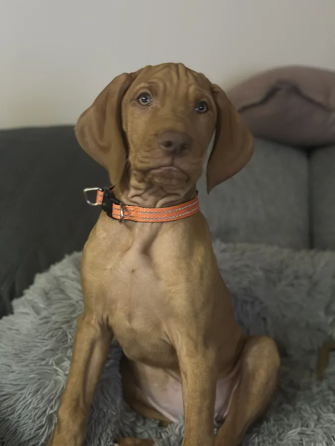 Luna is our loving family companion – a gentle, affectionate girl who shines both in the show ring and out working. Imported from Hungary, she comes from exceptional breeding lines. Both her parents are health tested with excellent results, which can be verified on the Kennel Club or Vizsla Database.