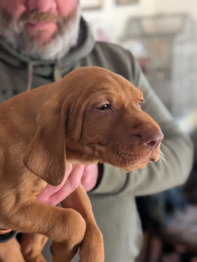 A stunning litter of Hungarian wirehaired vislas. The Dam is predominantly a deer tracking dog that excels at beating and walked up shooting. The sire is used for grouse counts and works with birds of prey. Two dog pups available.