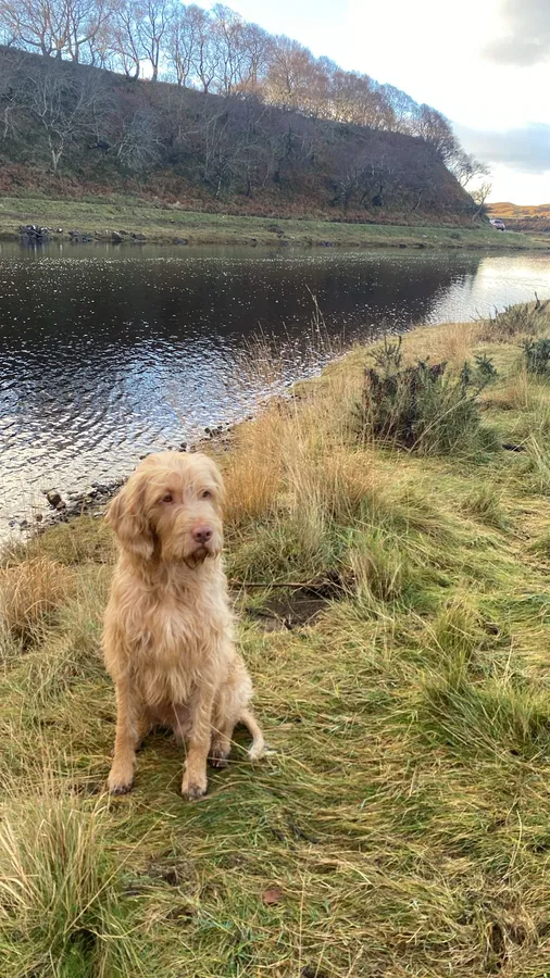 Sebastian is 4 years old, bred in Herefordshire UK from established working lines, 4th generation from the Gunnerwood Kennels. He has hip score of 7:6 (Oct 24) and HUU clear (Feb 25). He has great wire coat and gentle russet gold colour.