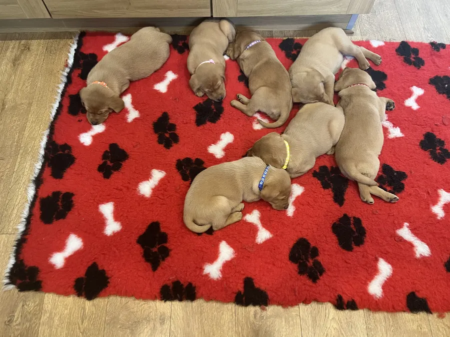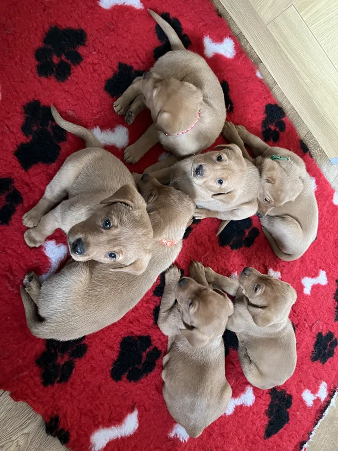We have a litter of 7 fabulous fox red labrador puppies, 4 bitches 3 dogs. Both parents are working labs who work throughout the season on pheasant and grouse shoots and have excellent working lines with many FTch.