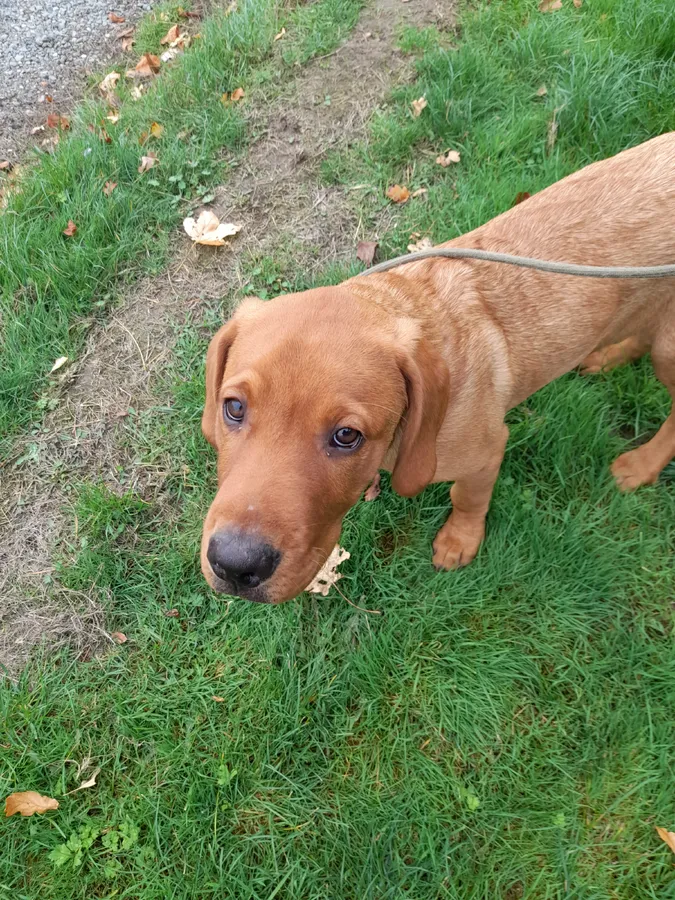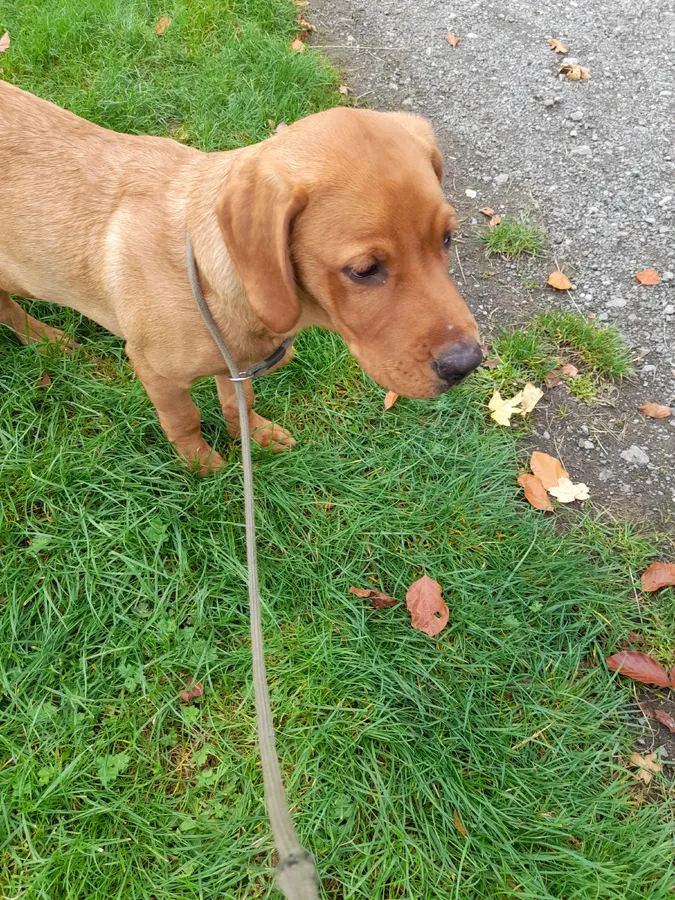 Our black girl had 5 puppies . We are left with 1 fox red boy due to waste of timers. Both parents have good hips and elbow score and both are working dogs. The Dad was stud so has health tests. We have called him Reggie he is a steady and calm pup. All vaccinations are done and wormed.