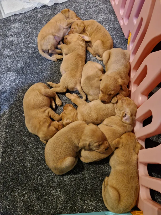 We have 10 beautiful, healthy fox red Labrador puppies looking for their forever homes!