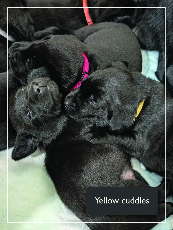 Stunning litter of 7 black Labrador puppies born 17th October 2025 from working line stock, 2 female and 5 male.