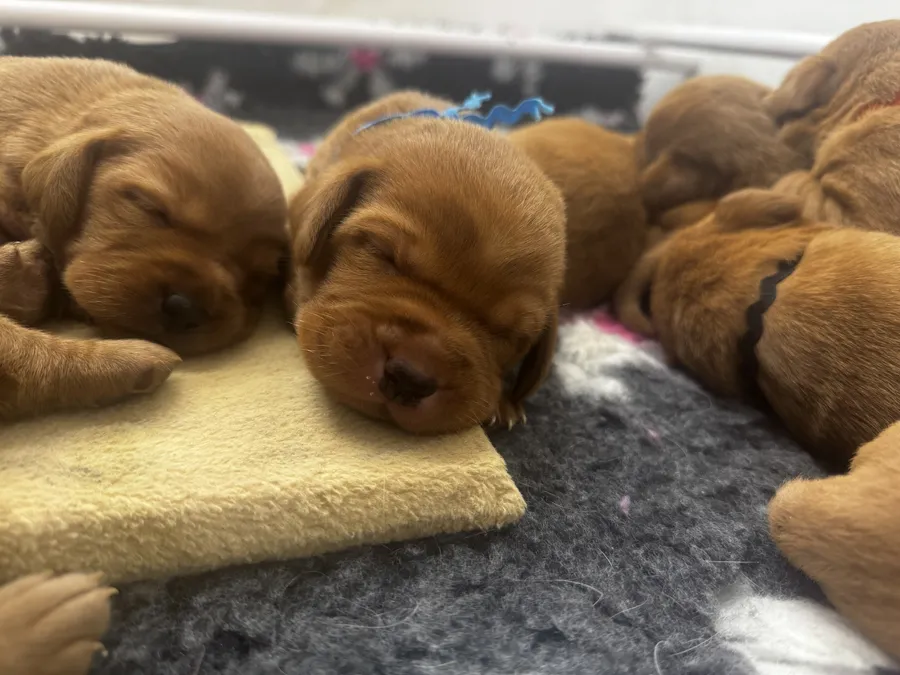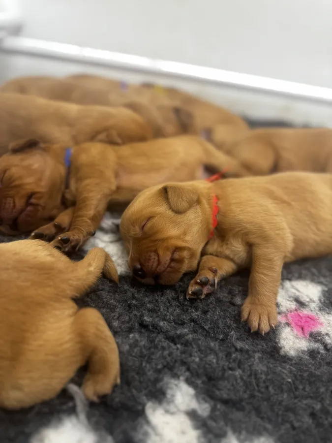 Mo, my beautiful Fox Red Labrador, gave birth on 4th November to a litter of 9 Labradors.  Dad, Jason, is striking red Labrador. Out of which I have 6 red boys and 1 red girl available.