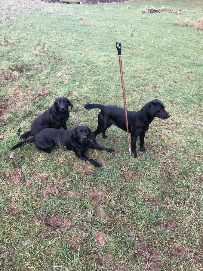 Aniceom gundogs ready for there forever homes 5th December 5 th generation lab pups Molly our home bred black bitch produced 8 all black litter of 4 boys and 4 girls fathered by our home bred yellow dog Mig 5 th generation of working gundogs trailing working tests picking up and peg dogs , ideally suited to active pet or working homes Many FTCH’s though out there pedigree including FTCH troddenmills full throttle of leacaz OFTW leacaz Reed FTCH Troddenmills beck and call leacaz FTCH Astraglen hail to name a few Molly & Mig produced Nat from a previous litter with 0/0 hips 0 elbows and a clear eye cert for 2025 photo with mother and father