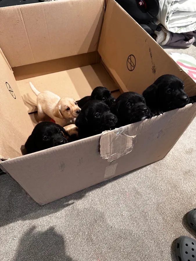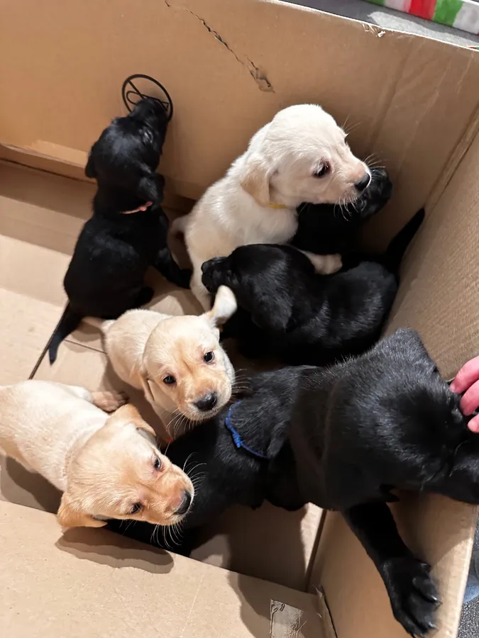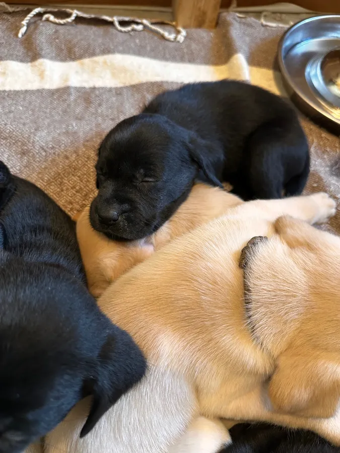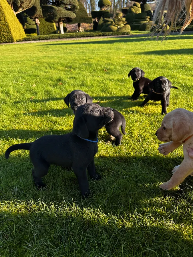 Three yellow dogs, two black bitches and one black dog are currently available (three currently reserved from the original nine).