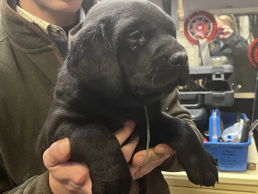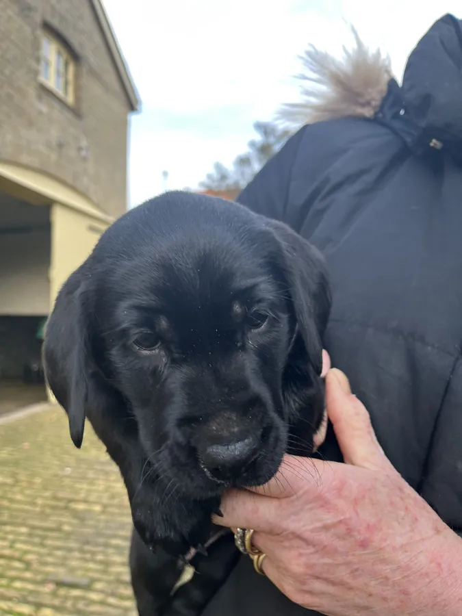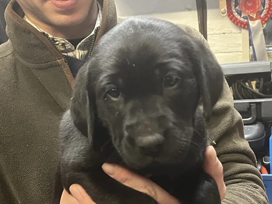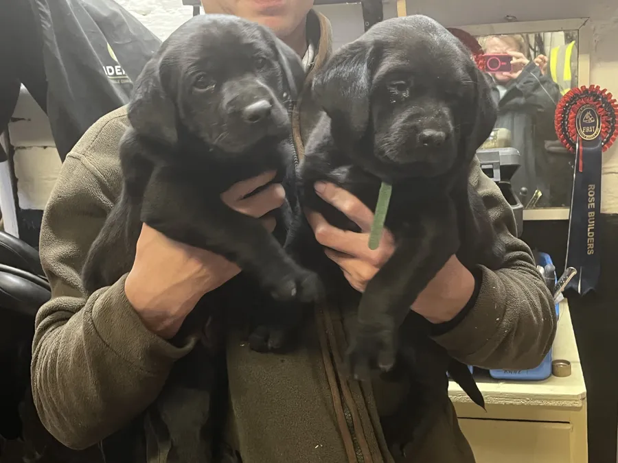 Two KC registered black boy Labrador retriever puppies. Both parents smart working dogs with excellent temperaments. Both fully health checked and will be microchipped, vaccinated and wormed before collection.