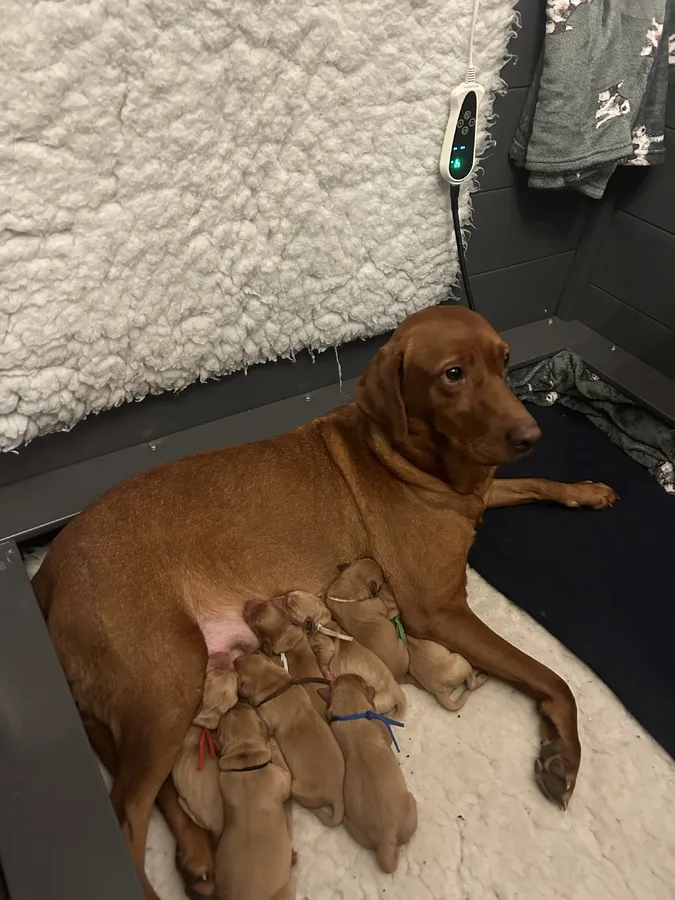 Here we have 5 girls and 4 boys, all doing amazingly! Both mum & dad are kc registered but I will not be kcing pups! Both mum and dad have health scores I wanted to make sure this breeding is done properly! Dad is a field trial champion 2 years running and mum is a working lab, both parents are still actively in the field and they do a great job! All pups will come with a full health check from vet including microchip! I will NOT be doing vaccinations this time as unfortunately not all vets carry the 2nd and then new owners will have to start again!! All pups will come with puppy packs, 4 weeks free insurance Food Blanket Microchip, as a dog trainer will do our upmost to make sure the pups have some basic training prior to leaving our home, would prefer a working home but it’s not essential as long as you give them a GREAT home! Nothing is to much for these pups! All will be socialised to children, gun fire, water & car. Enquiries now open! Girls £1400 Boys £1200