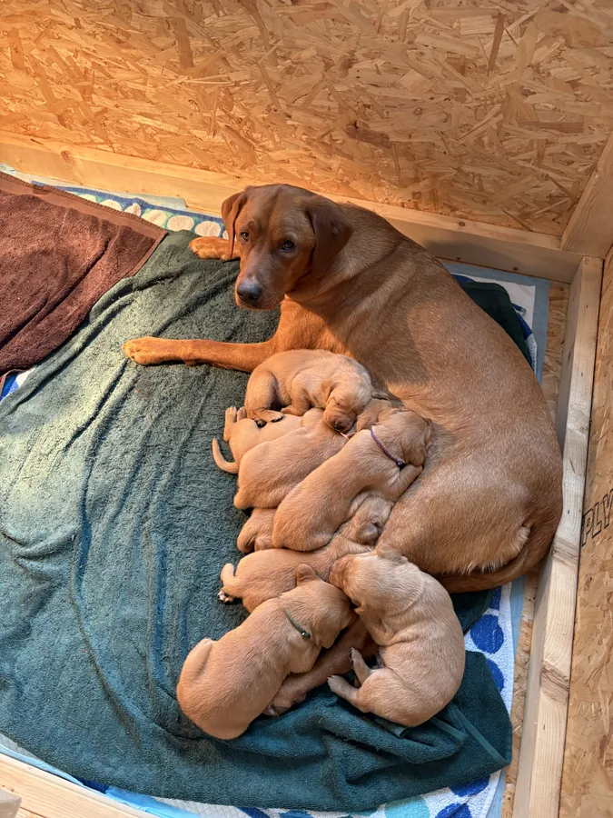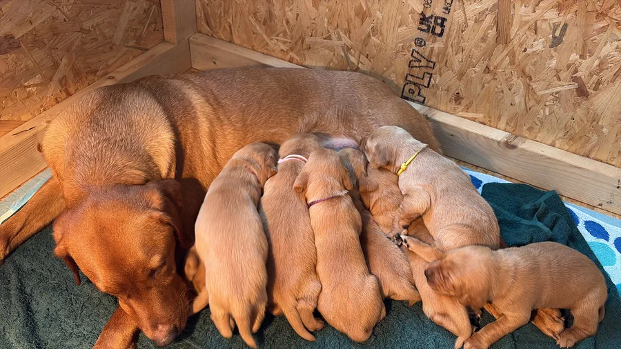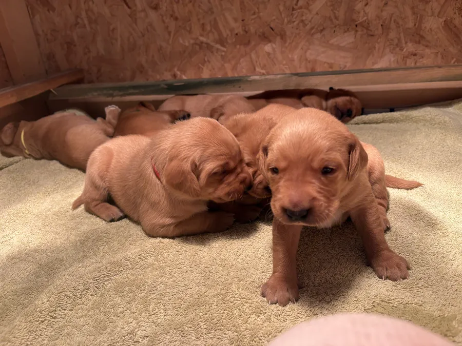 Quality litter of Fox Red Labrador Retriever puppies available.
