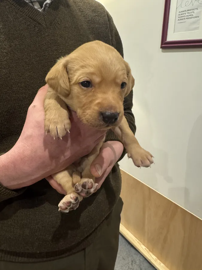 Brave is an exceptionally handsome KC registered fox red shade of yellow labrador with a steady, kind and gentle temperament who has proved himself as a very able, intelligent and strong working dog. The pairing was carefully chosen for both ability, health and nature.