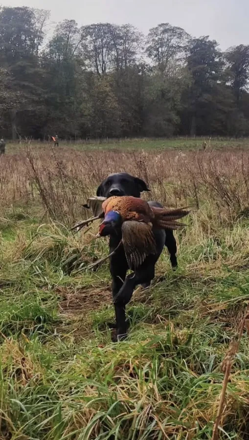 Mum is our own working picking-up Labrador. She has a very sweet, loyal nature and is exceptionally biddable and easy to train. She works steadily in the field and is a pleasure to have at home.